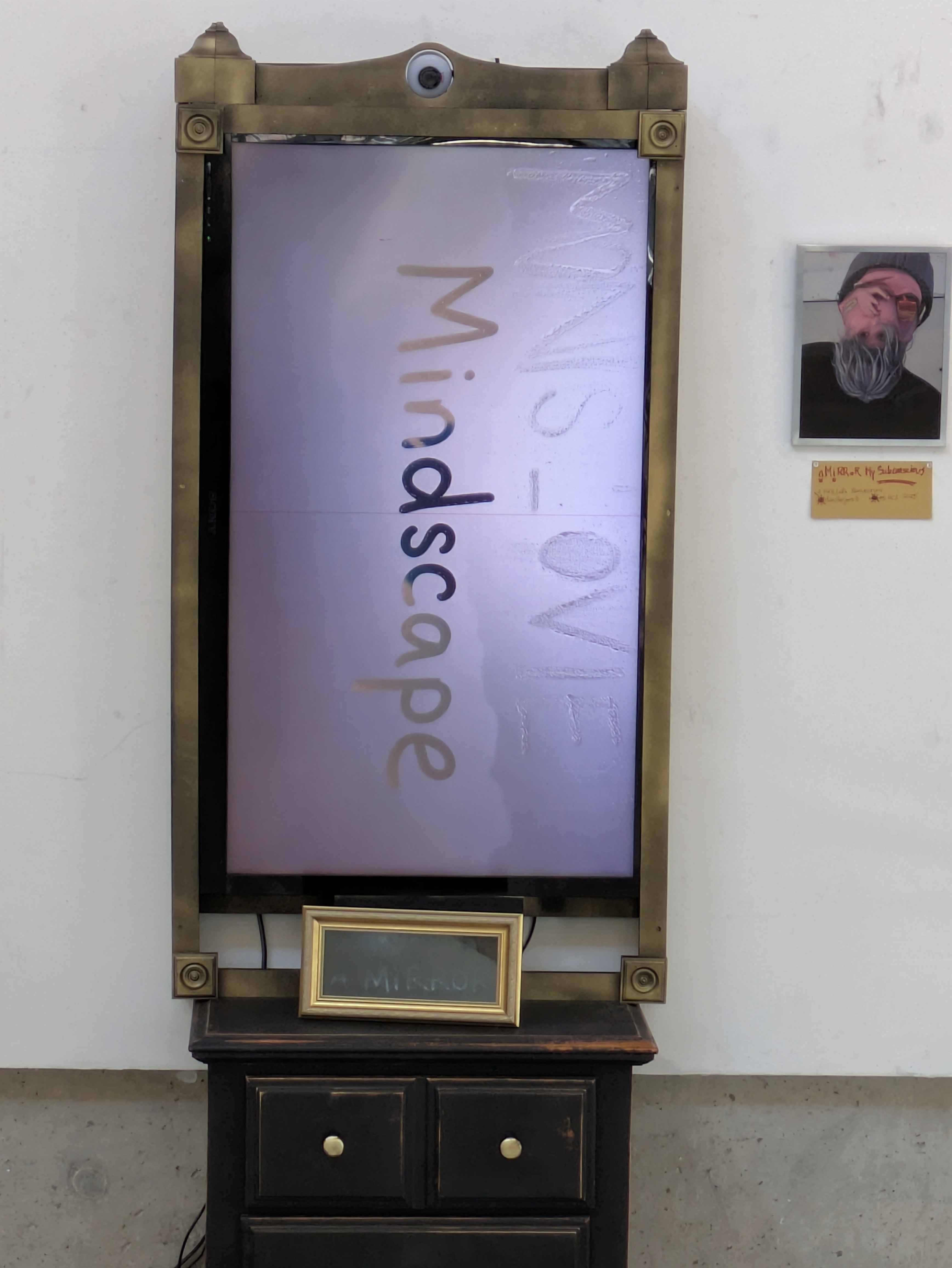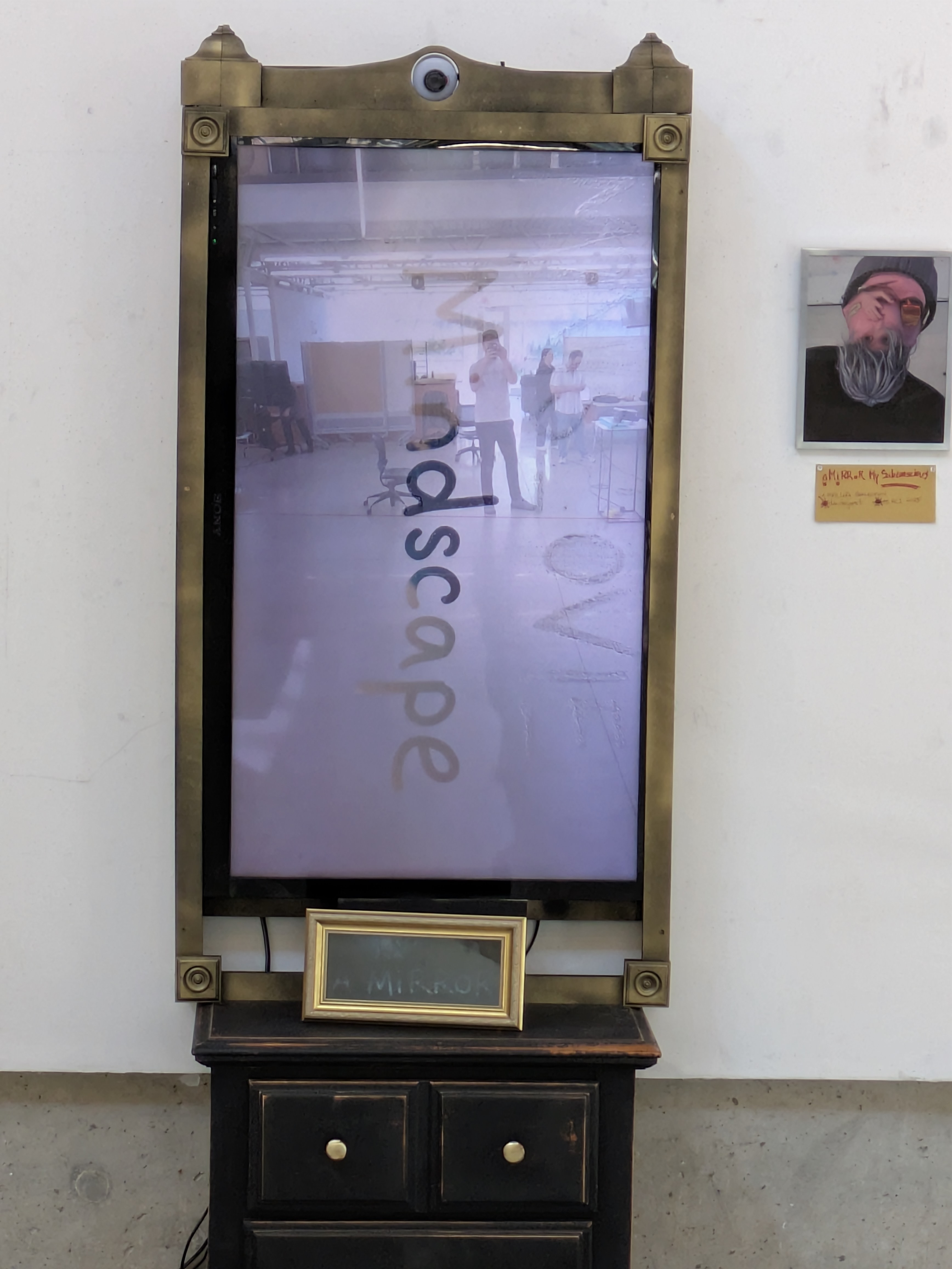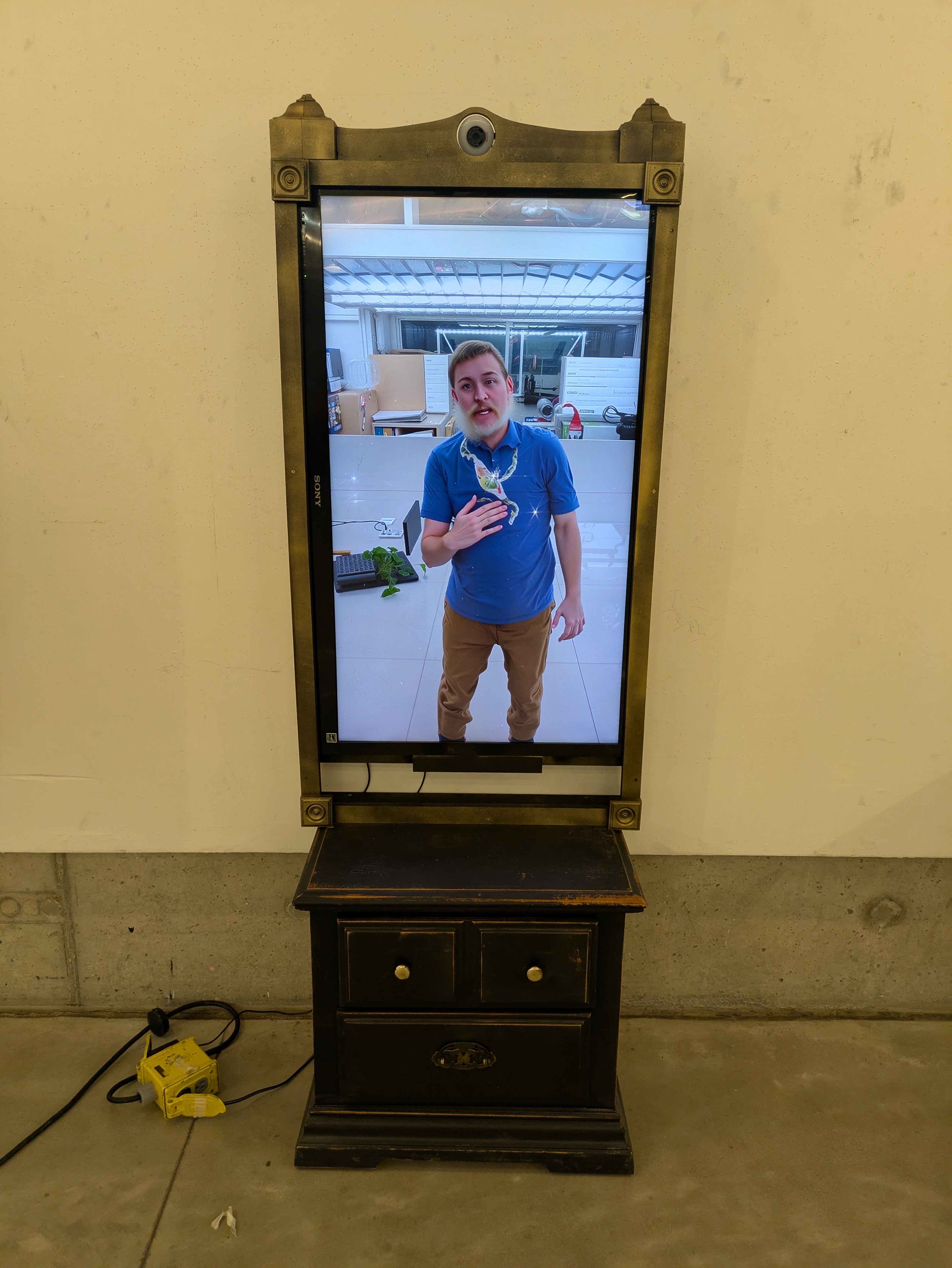 The physical installation was constructed using reclaimed materials, including a repurposed television, a salvaged nightstand, and a custom-built mirror frame. By combining generative AI, real-time interaction, and hand-built physical form, aMiRRoR functions as both a technical system and a sculptural object, designed for public interaction and contemplation.