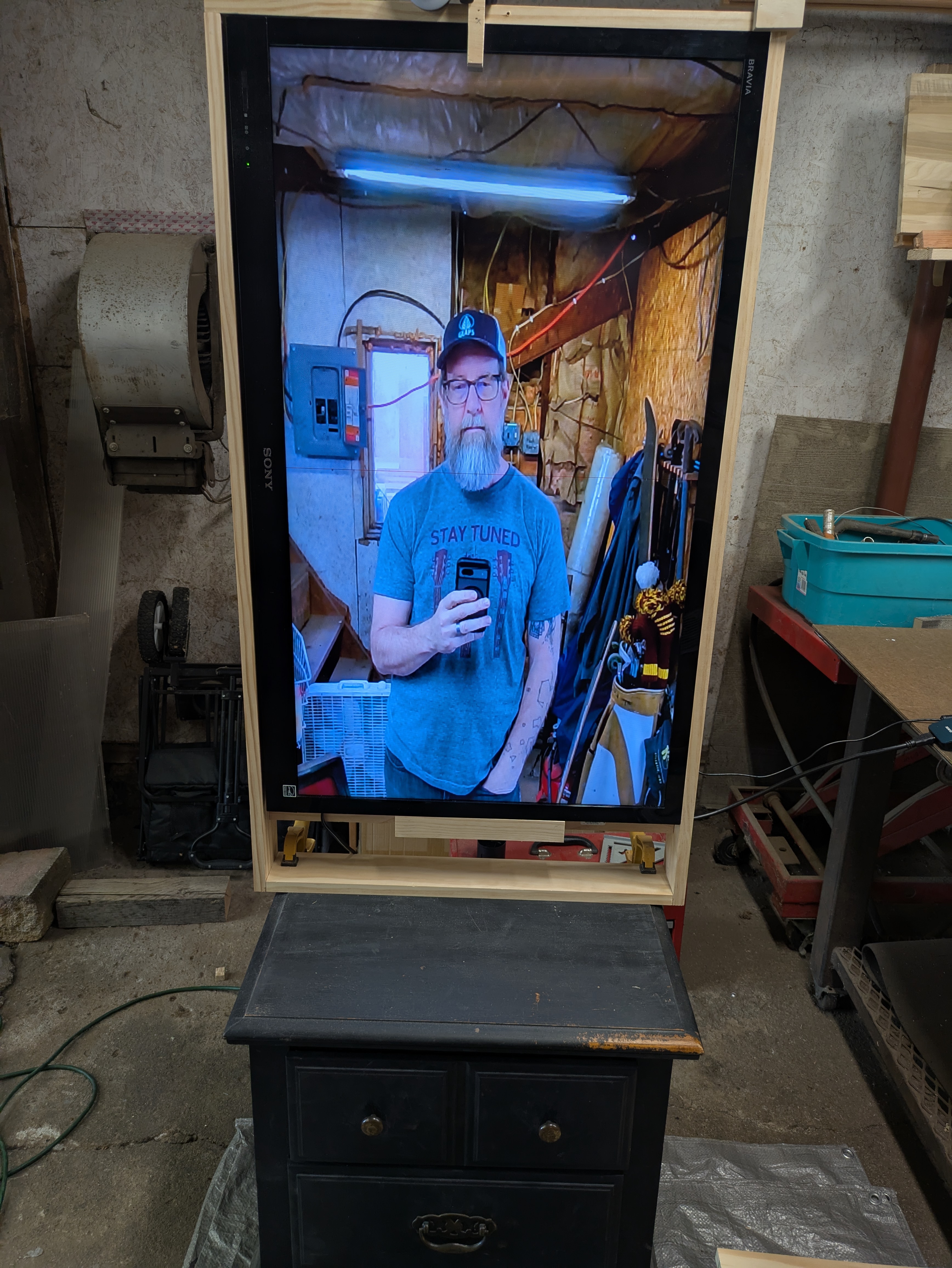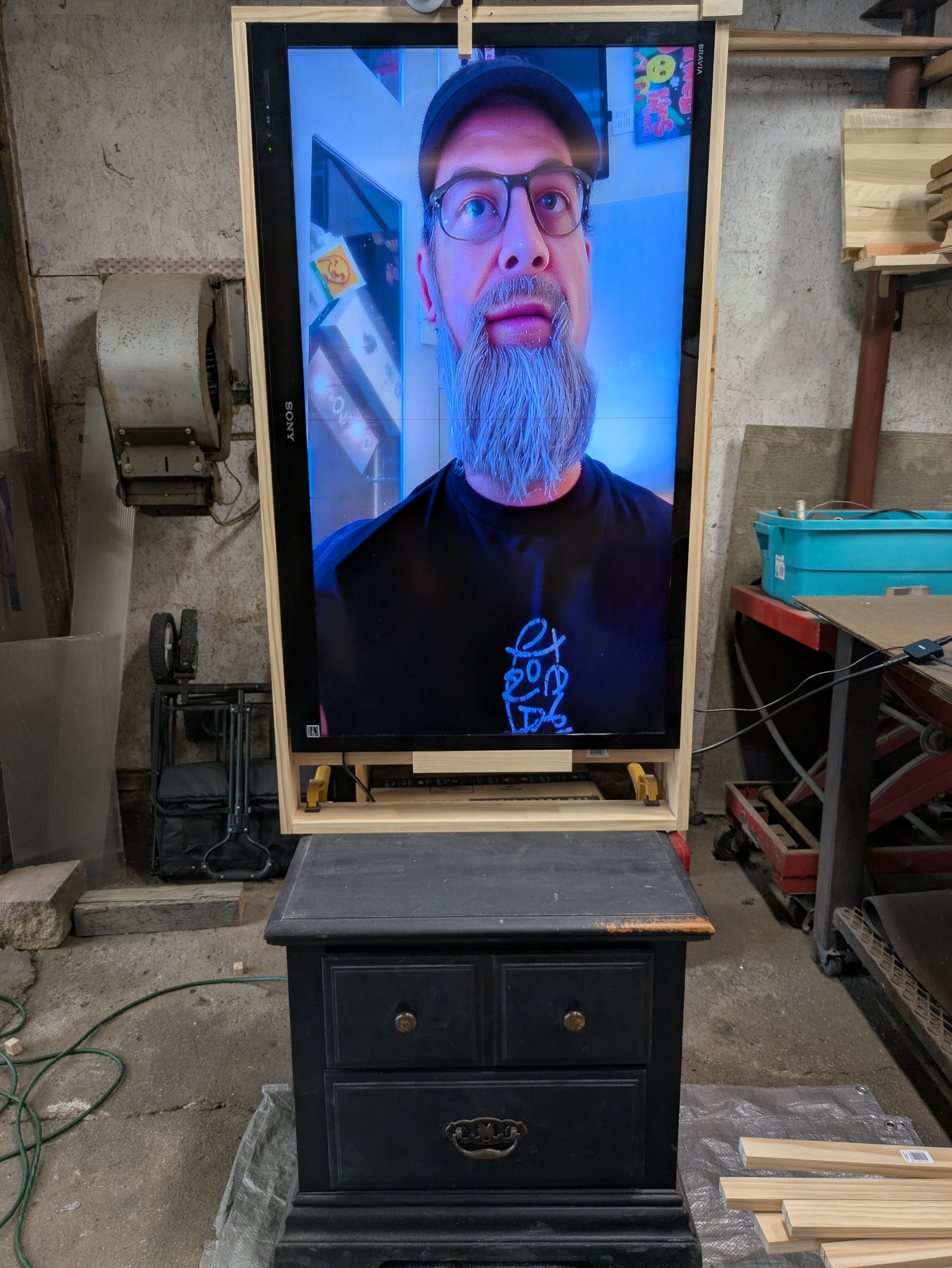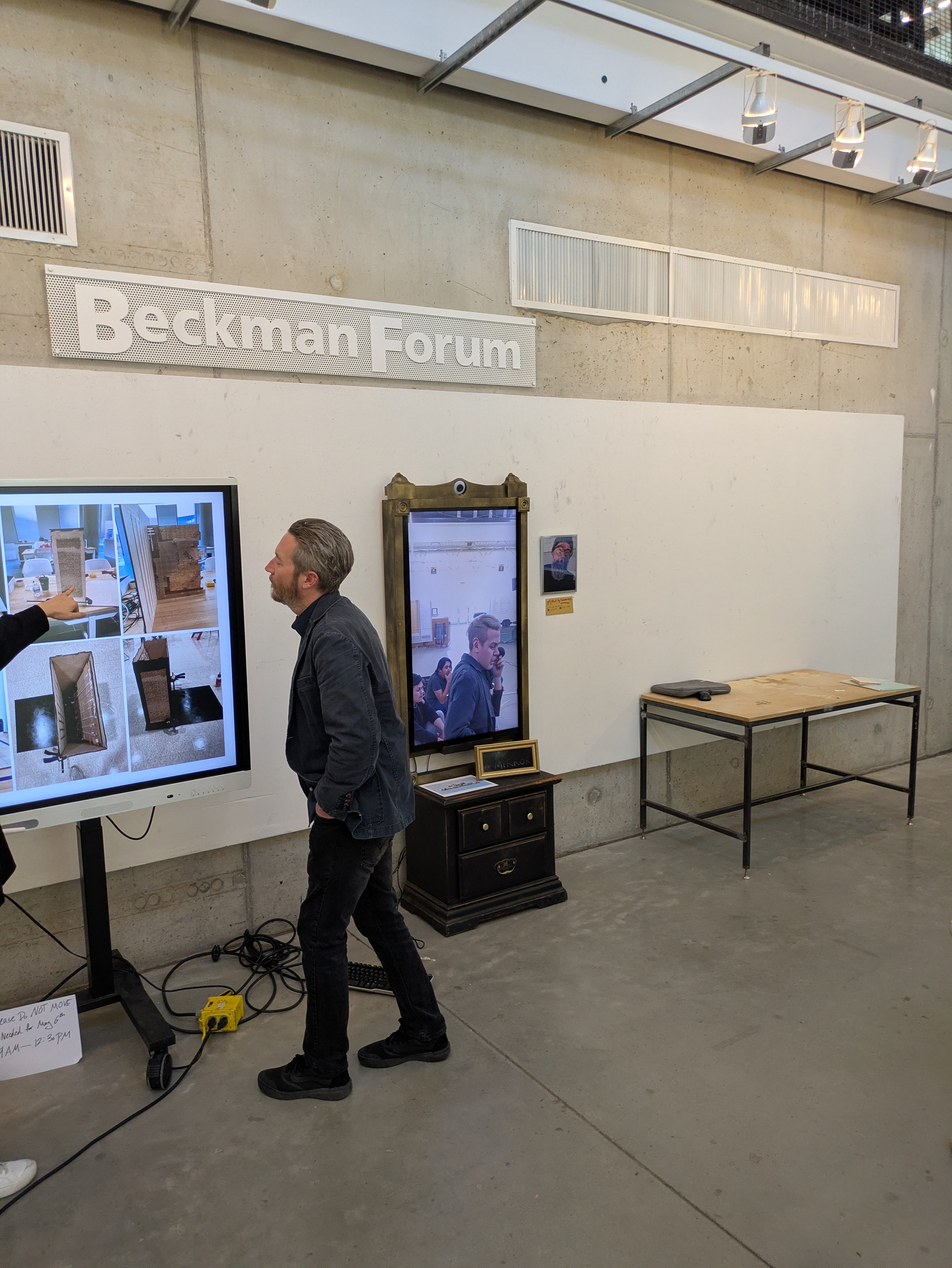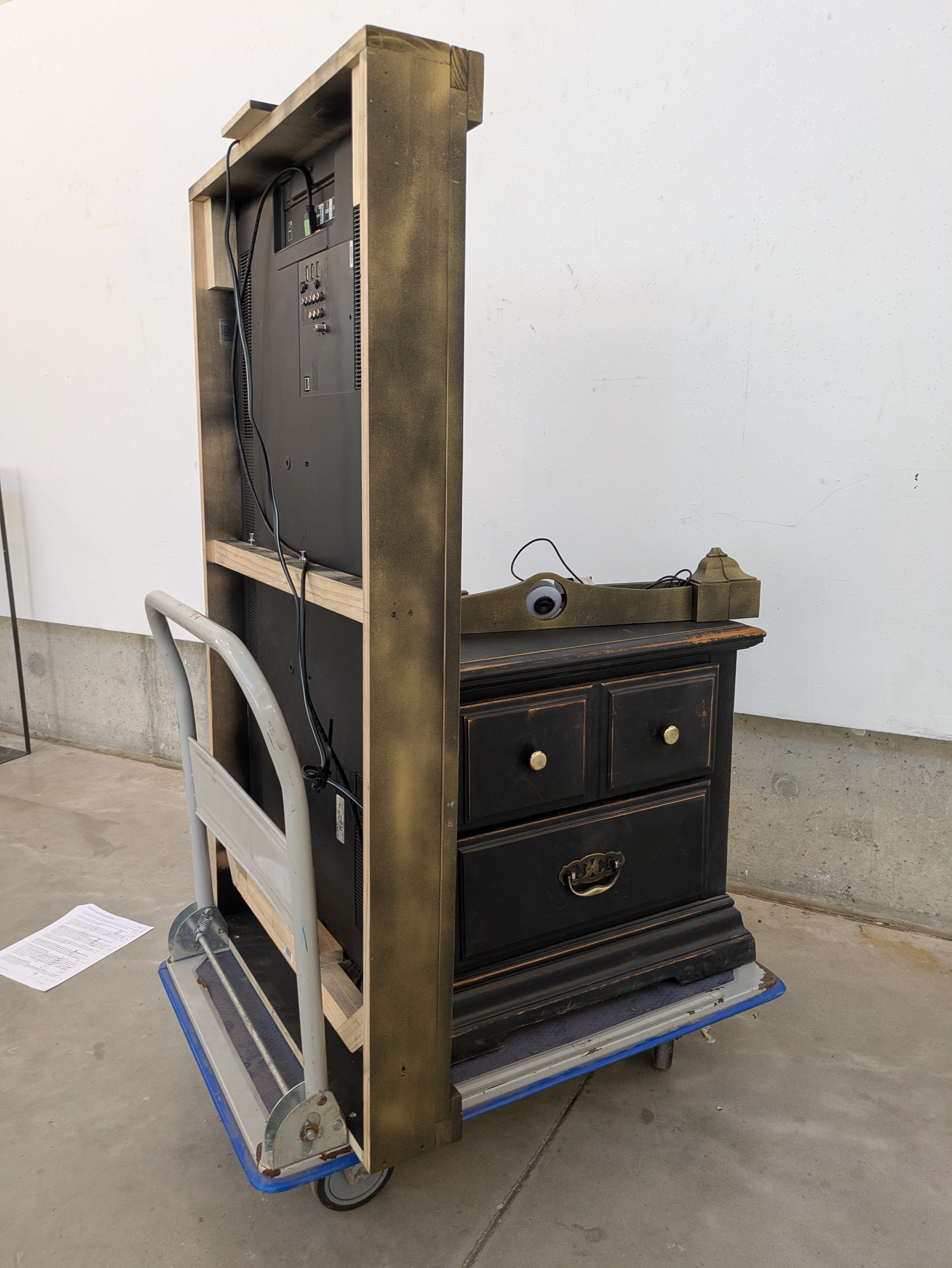 The physical installation was constructed using reclaimed materials, including a repurposed television, a salvaged nightstand, and a custom-built mirror frame. By combining generative AI, real-time interaction, and hand-built physical form, aMiRRoR functions as both a technical system and a sculptural object, designed for public interaction and contemplation.