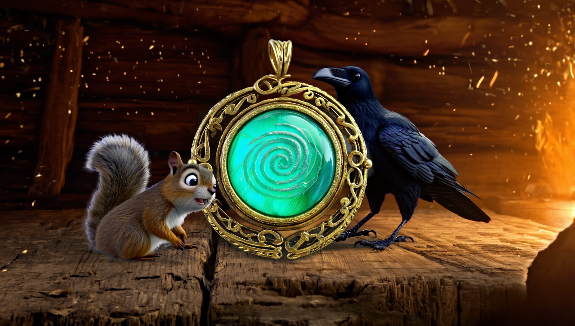 Prompt: A Brave Animal - An Isolated Cabin - A Mysterious Amulet